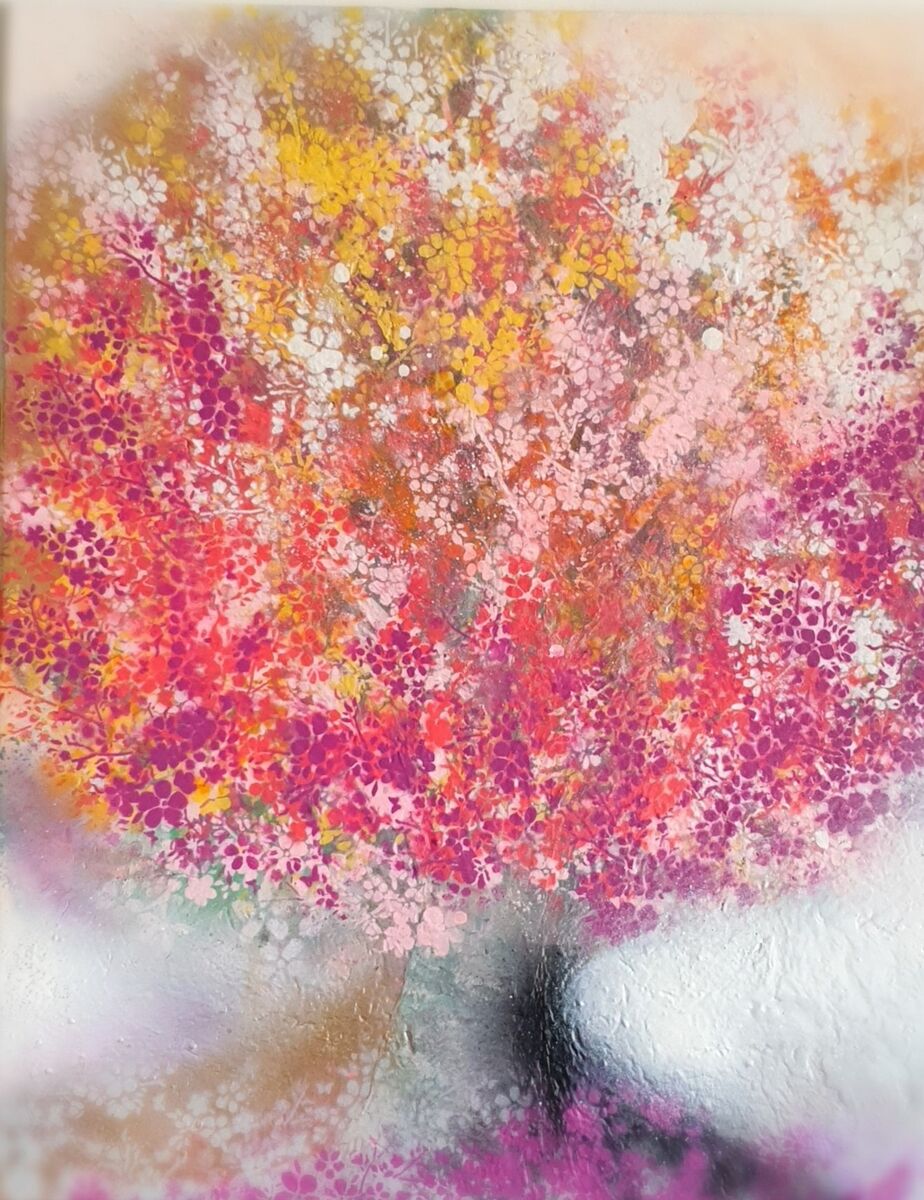 Tree of abundance I am wishing you! that is acrylic and spray paint, with lost if flowers.