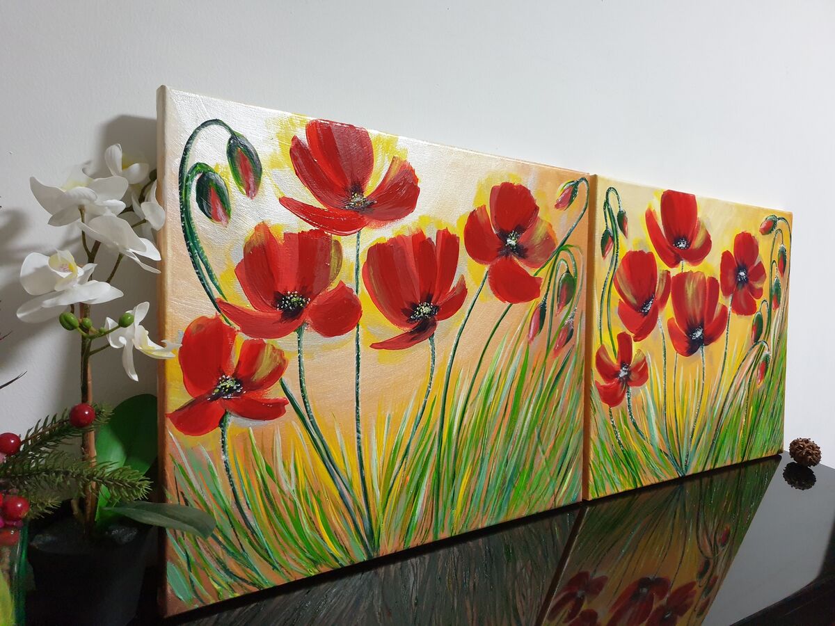 I tried this time with some enamel painting with those poppies. Don't we all love red poppies?