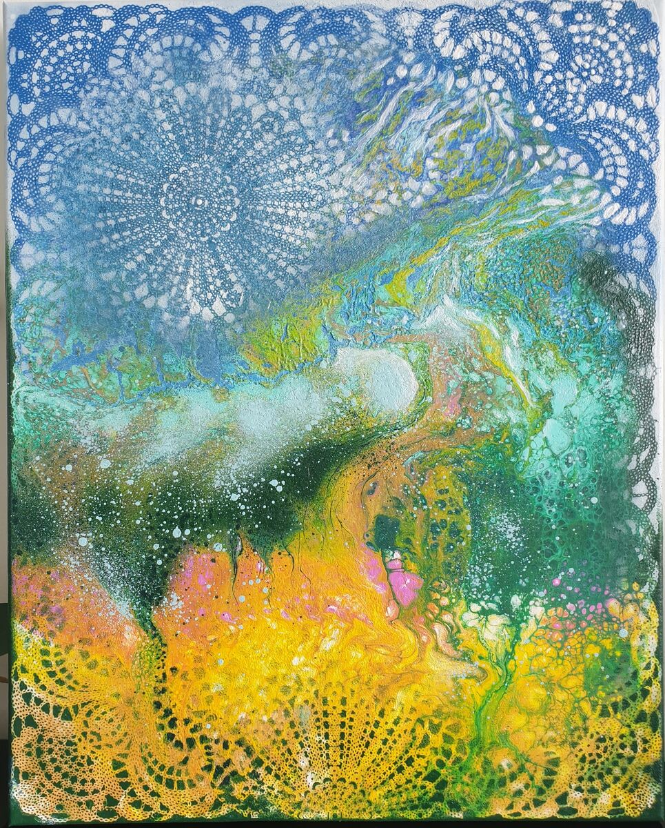 Spooky forest I called that one. Good thematic for halloween. I started with acrylic paint and finished with spray paint.