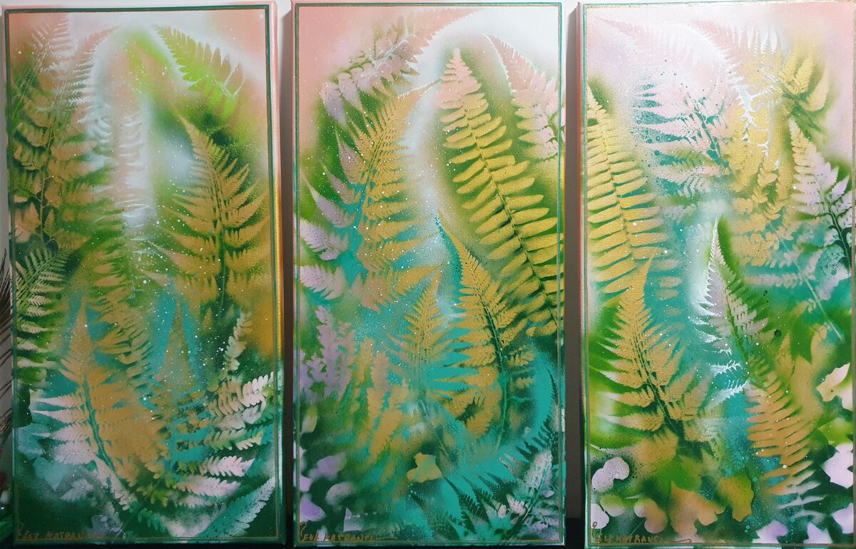 This is a trio of Ferns. All made of spray paint, and gold spray paint. That is 3 stretched canvas of 95x61cm.