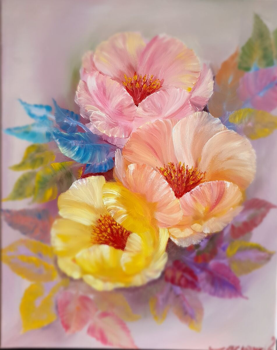 Pastel poppies oil Painting. Stretched canvas 41x51 cm freshly painted