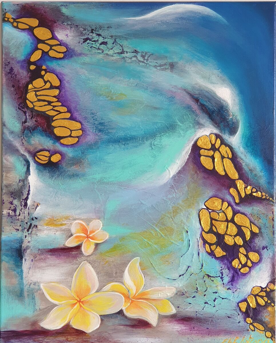 This is acrylic painting with gold paint. and fiber paste for texture. I love the scent of the frangipani flowers!