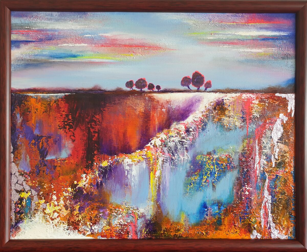 This is acrylic painting with fiber paste. That is part of a group of collections of save the tress paintings that I made already in the past. Frame is provided.