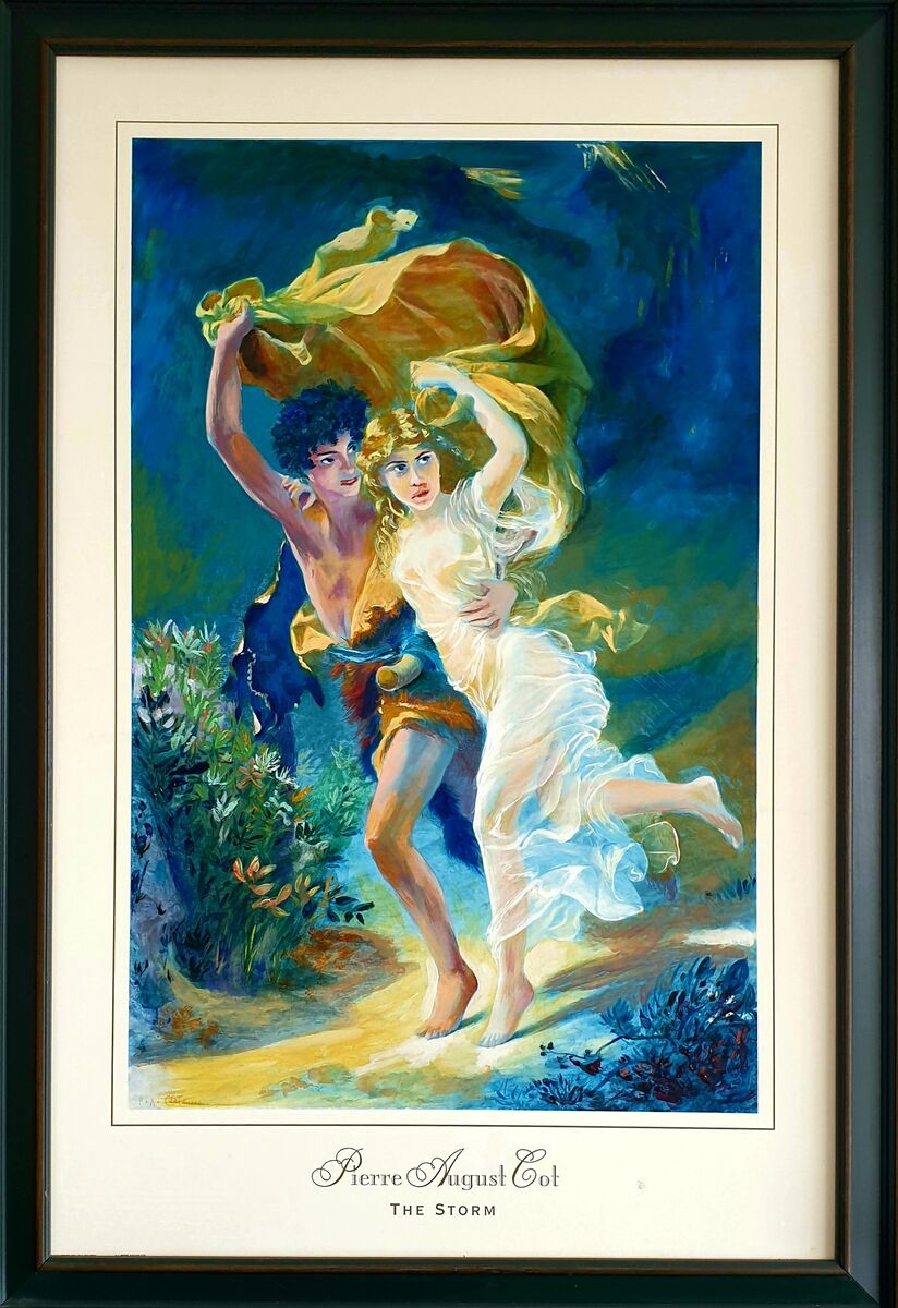 That is acrylic painting on a poster. That is black wooded framed. This was a poster from Pierre Andre Cot, painted in 1880.
